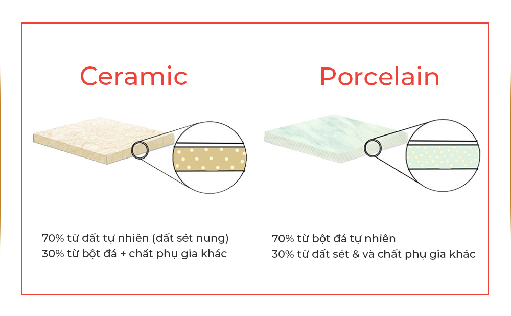 Gạch Porcelain: Là lựa chọn phổ biến hàng đầu hiện nay. Gạch có cấu trúc đặc, độ cứng cao, chống thấm và bền màu tuyệt vời.