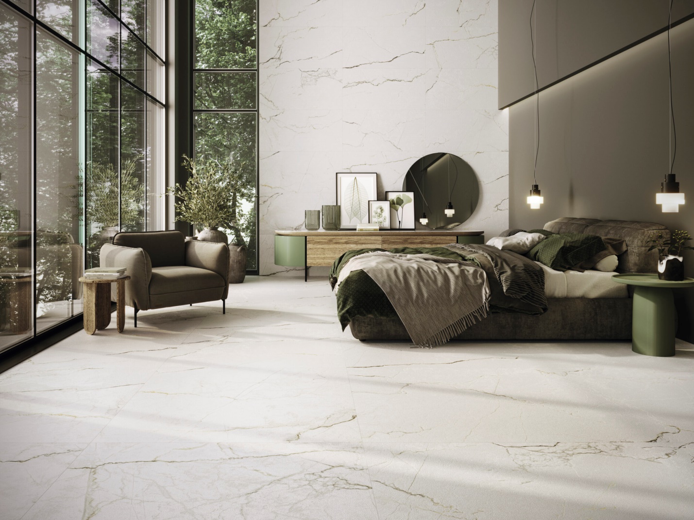• Phòng ngủ: Chọn gạch tông màu dịu nhẹ, bề mặt mờ hoặc gạch giả gỗ để mang lại sự thư giãn và cảm giác gần gũi.